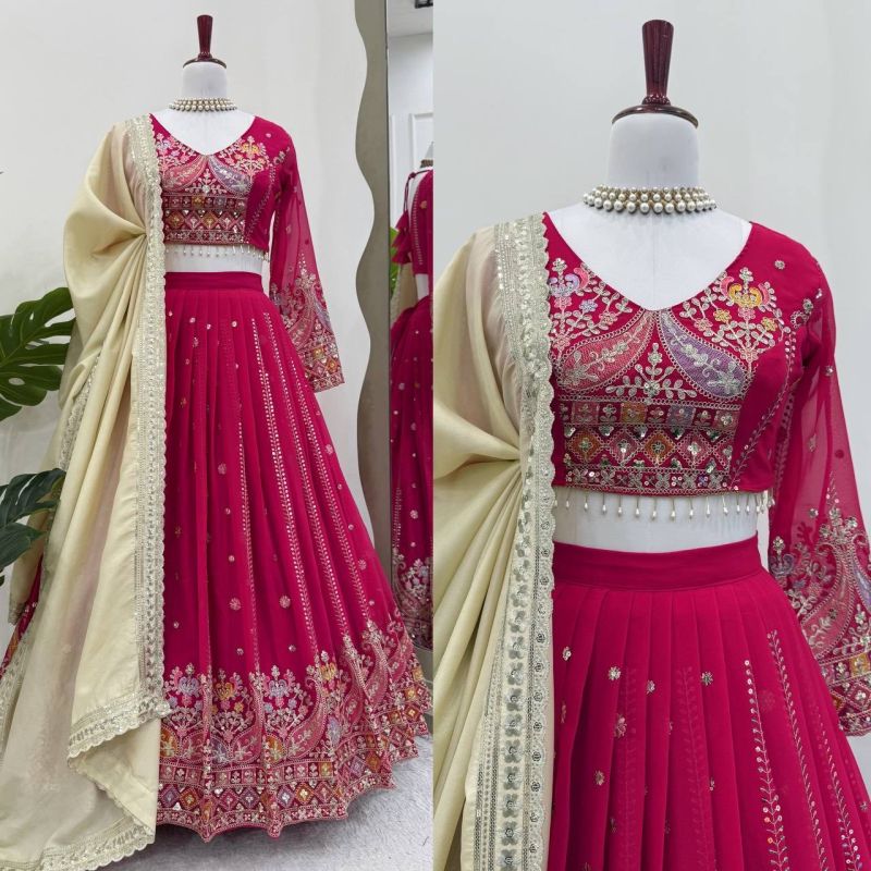 | Material | Net,Net Lehenga With Resham Thread & Sequins Work |