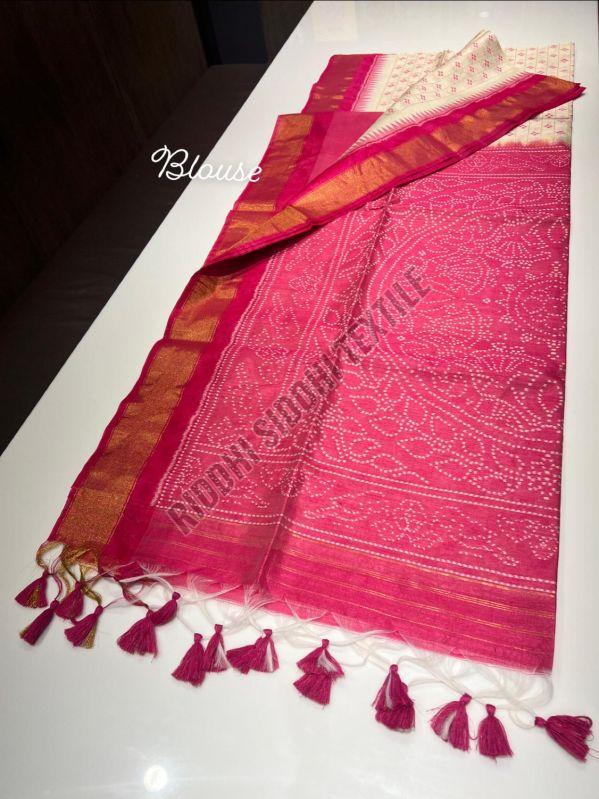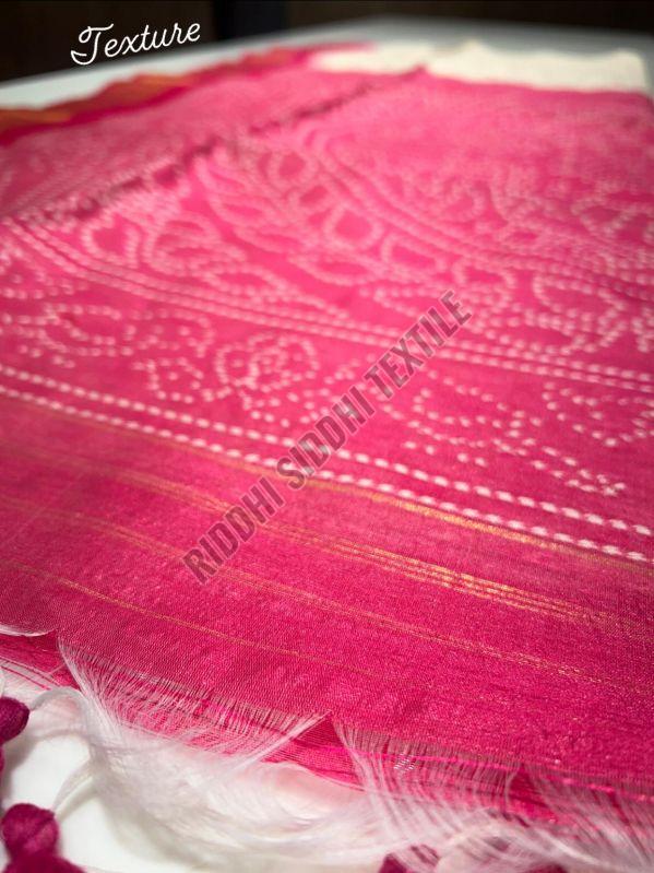 | Weaving | Bandhani Butti Body, Jari Weave Pallu |
