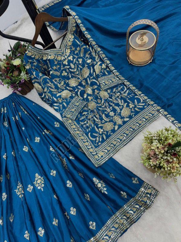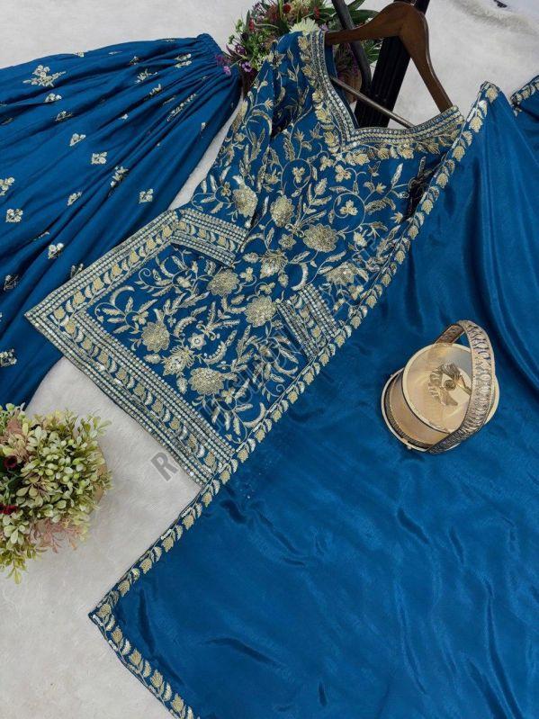 | Dupatta Fabric | Pure Chinon Silk With Embroidery And Sequence Work Lace Border |