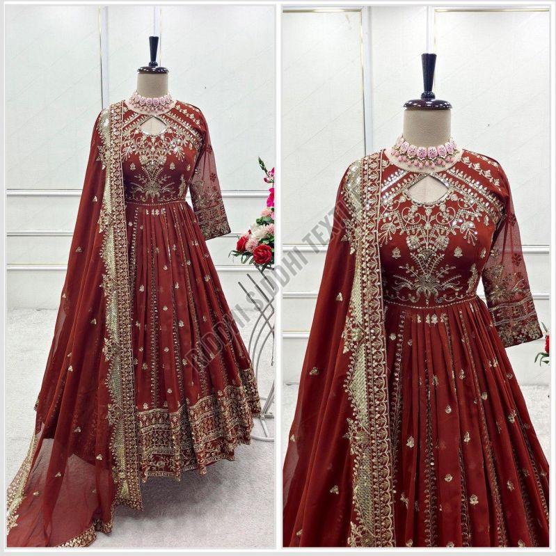 | Dupatta Fabric | Heavy Chinon Silk With Heavy Embroidery Sequence Work And Lace Border |