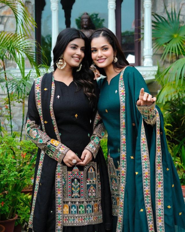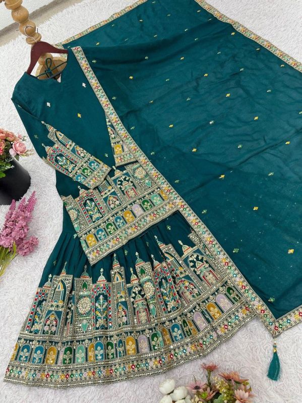 | Gharara Fabric | Heavy Chinon Silk With Heavy Embroidery Sequence Work |