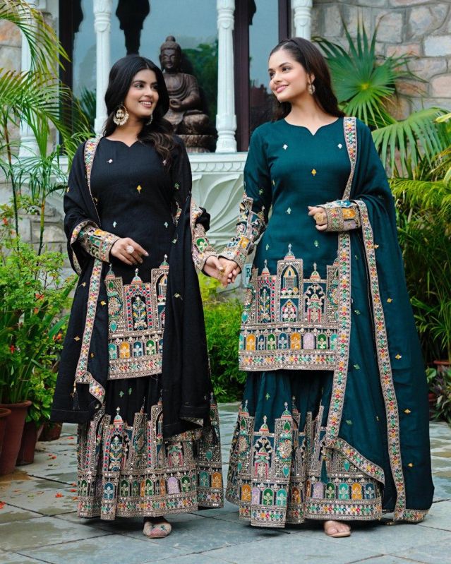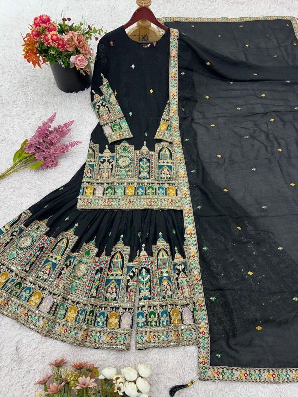 *Gharara Fabrics* : *Heavy Chinon Silk With Heavy Embroidery Sequence Work*