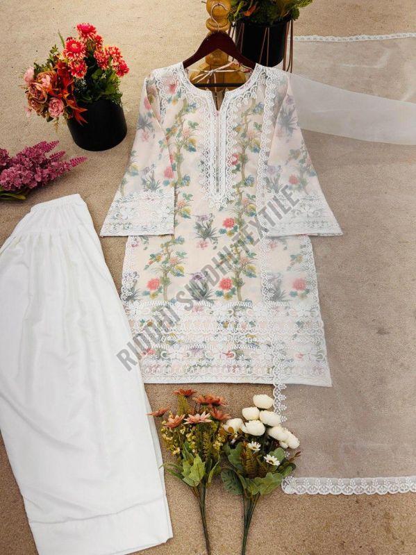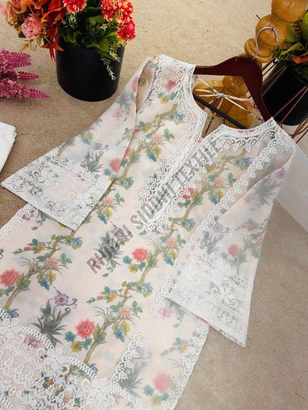 RST-024 Ladies Printed Organza Silk Suit Set